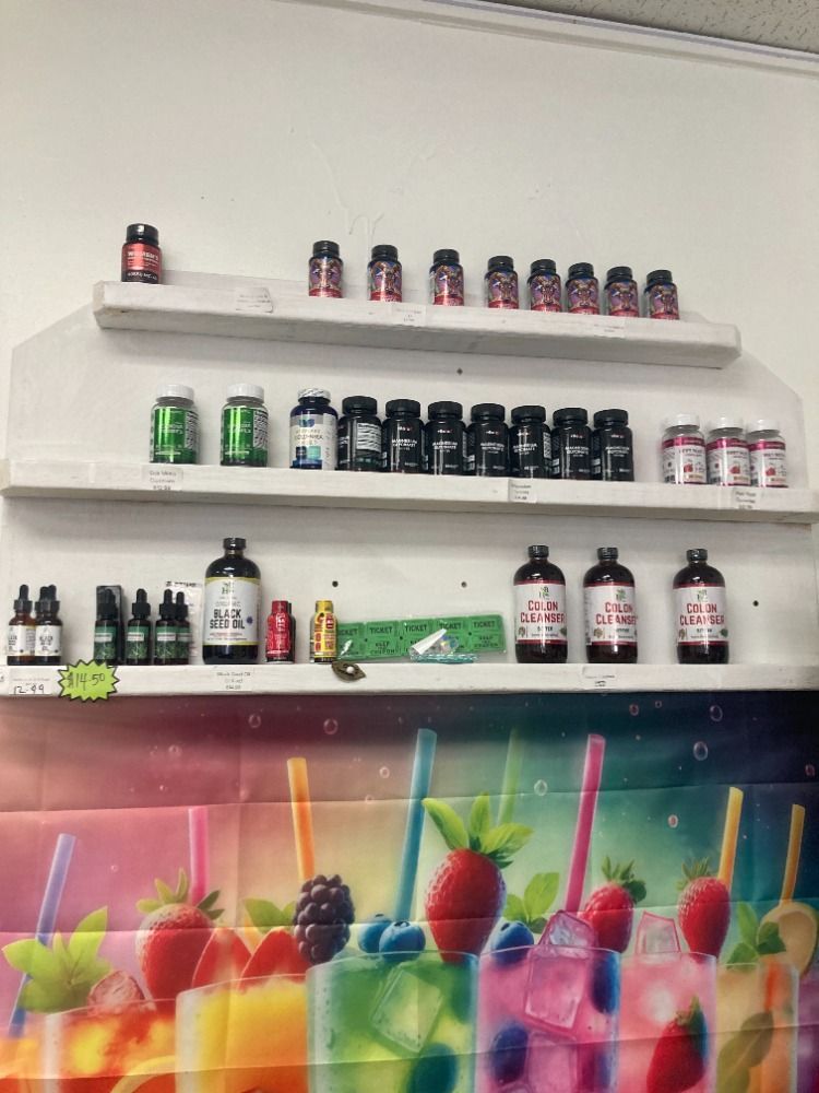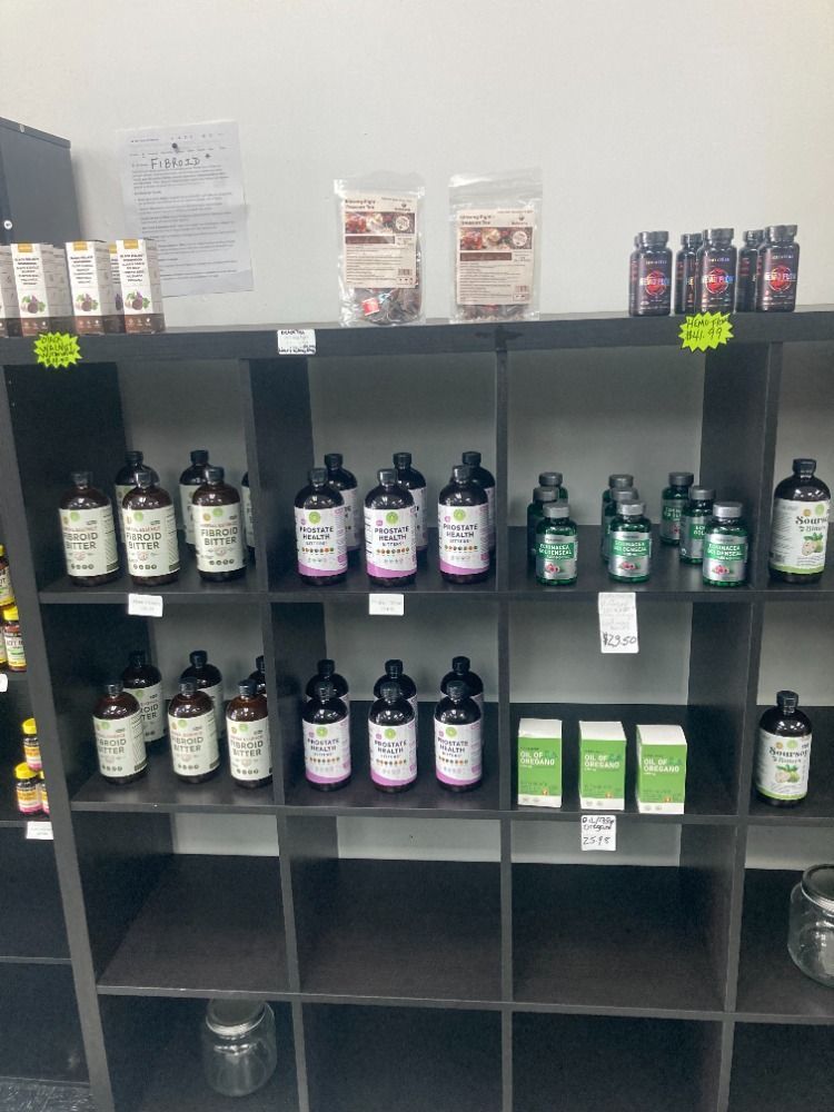Here's what we offer: A variety of herbs for specific health issues, soursop and papaya juice, kidney and liver detox teas, chlorophyll water, aloe vera juice, sea moss juice and sea moss gel, sorrel, peanut punch shake, black seed oil and colon cleanser tinctures, a variety of pills for muscle problems, blood flow, nerve functioning and much more health ailments.